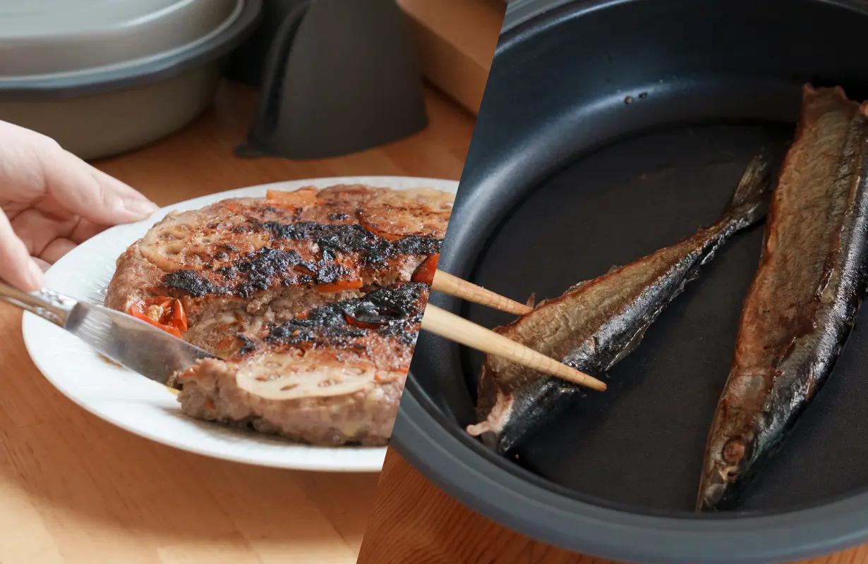 ・火を使わず空間も汚さず、レンチンで香ばしい焼き目のついた料理がつくれる。