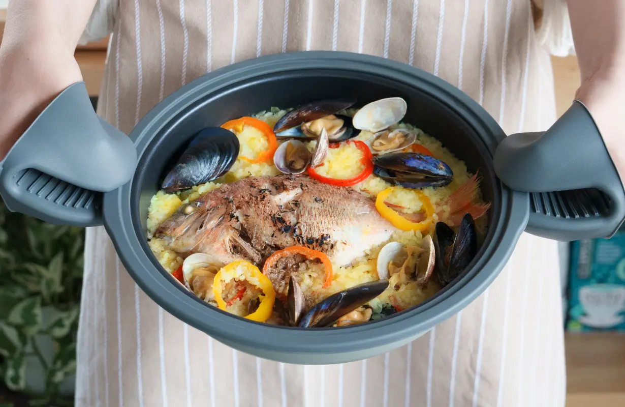 旦那がキャンプ帰りで疲れてるとき、子どもと一緒に簡単なアクアパッツァとか煮込み料理をレンジでサッと作れるのはいいな。後片付けも楽なら負担少ない。